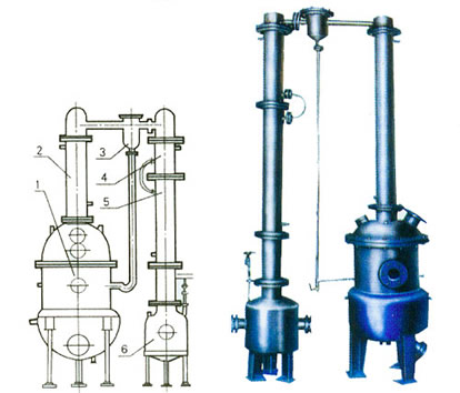 本設備主要包括濃縮罐、第一冷凝器、汽液分離器、第二冷凝器、冷卻器、受液桶六個部件組成,全部有不銹鋼制造。濃縮罐為夾套結構,冷凝器為列管式,冷卻器為蛇管式。